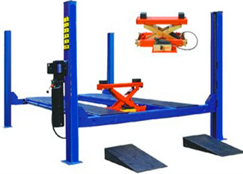 四柱式汽車舉升機(jī)屬于一款特殊液壓升降機(jī),是一種大噸位汽車或貨車修理和保養(yǎng)單位常用的專用機(jī)械舉升設(shè)備,四柱式汽車舉升機(jī)也很適合于四輪定位用,因?yàn)橐话闼闹狡嚺e升機(jī)都有一四輪定位檔位,可以調(diào)整,可以確保水平。四柱舉升機(jī)按其結(jié)構(gòu)又分為上油缸式以及下油缸式兩種。上油缸式四柱舉升機(jī)其油缸置于立柱頂部(帶橫梁),下油缸式的油缸置于平板下面。上油缸式四柱舉升機(jī)主要依靠四根鏈條拉起四個(gè)角,拉力油缸置于頂部,這種結(jié)構(gòu)簡(jiǎn)單,但自重增加。